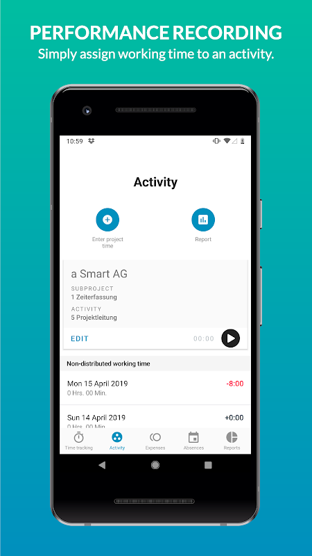 · Working Time Registration: Clock-in and clock-out easily with your device. Screen shows current balances at the same time