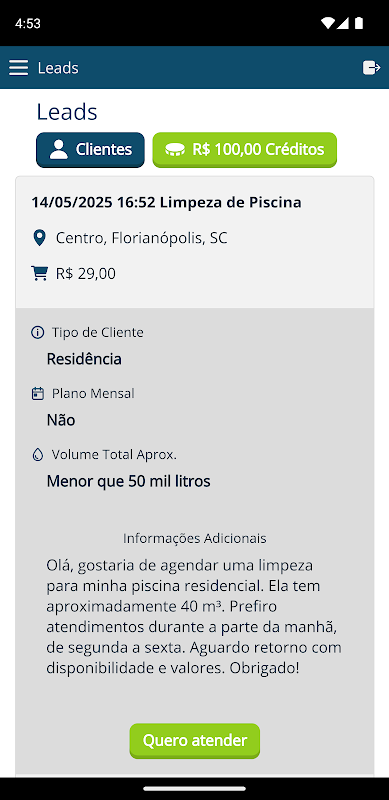 Paid version for pool professionals. Increases productivity and work organization; its tools prevent rework and increase customer satisfaction and loyalty.