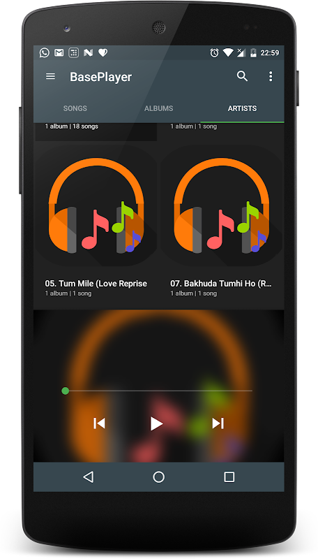 🎵This Music app features the most modern yet classical interface.The style of this Music app is simply elegant. It lets you manage your music very easily and effectively with Multi -select option to play the songs and now there is an option to manage your music via folder view as well. Base Player - Music is becoming one of the most successful and popular music player available in the android market. This music Player supports mp3,wav ,flac and many other such audio formats. Listen to your favorite music on the most elegant and beautiful user interface. Control the sound of the songs with a power and beautiful 5 band equalizer. It is based on artists ,albums,songs,playlist etc.(Supporting wav , mp3, flac and many other such formats) The perfect animations and minimalist design has a soothing effect on you.