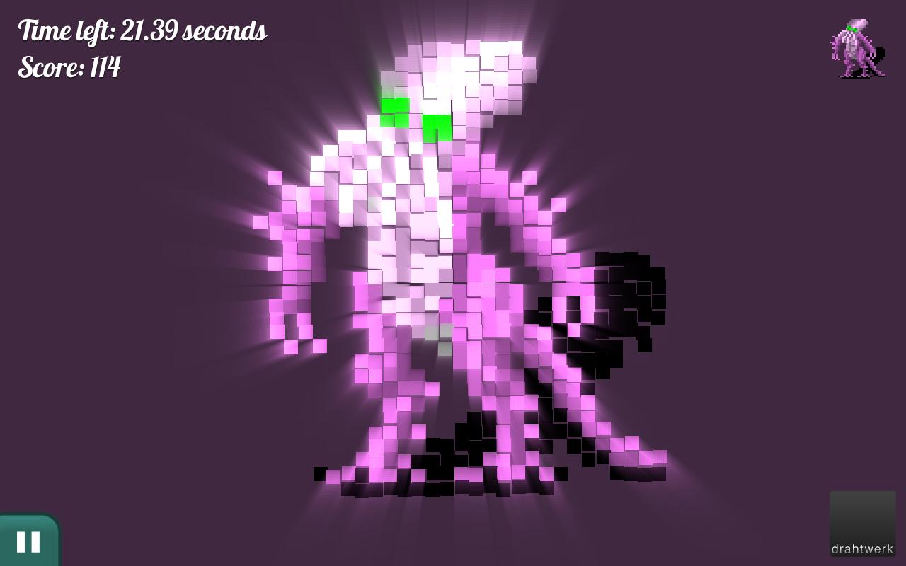 Touch the screen to twist and turn the pixels until the pixel art reveals itself.
