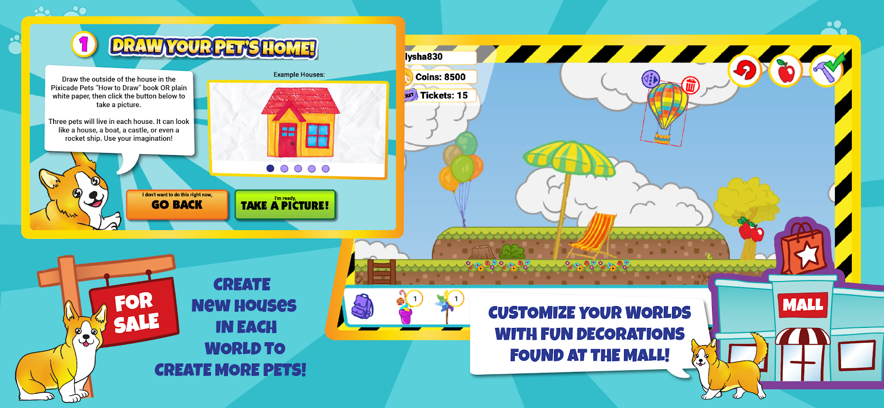 Just DRAW your Pets and their supplies, SNAP a picture in the Pets App then PLAY and CARE for your own amazing world of Virtual Pets!