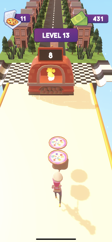 Be aware of the doors! Will you stack your pizzas to reach the finish line with maximum pizzas or will you bake them for not taking any risks?