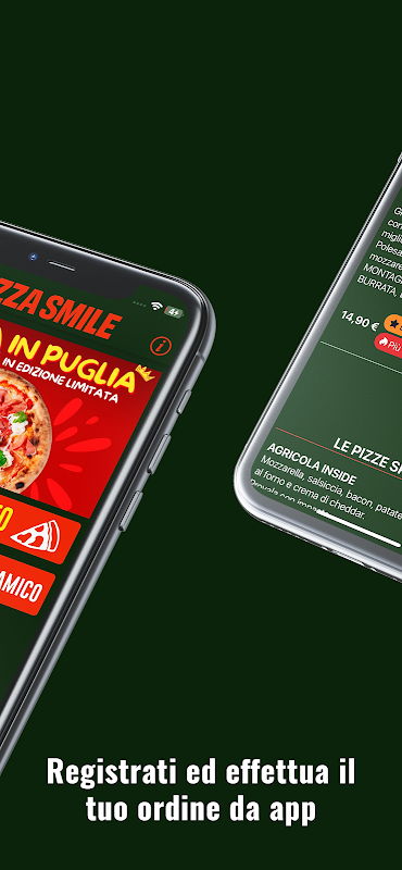 By downloading the Pizza Smile App you have over €50 worth of coupons to use on your first orders, but not only that, you have the Smile Club Fidelity, the more you buy the more points you accumulate to transform into free pizzas for you.