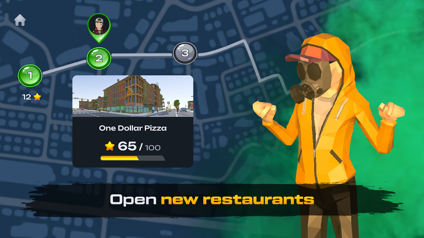 - Possibility to improve pizzerias, open new ones and advance on the map;