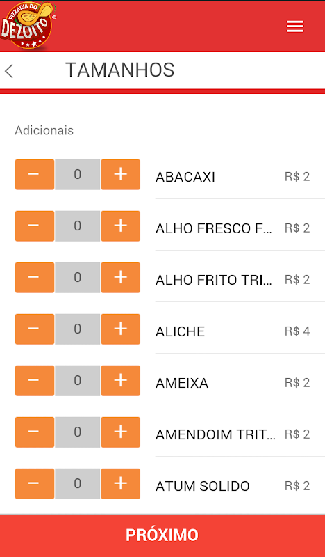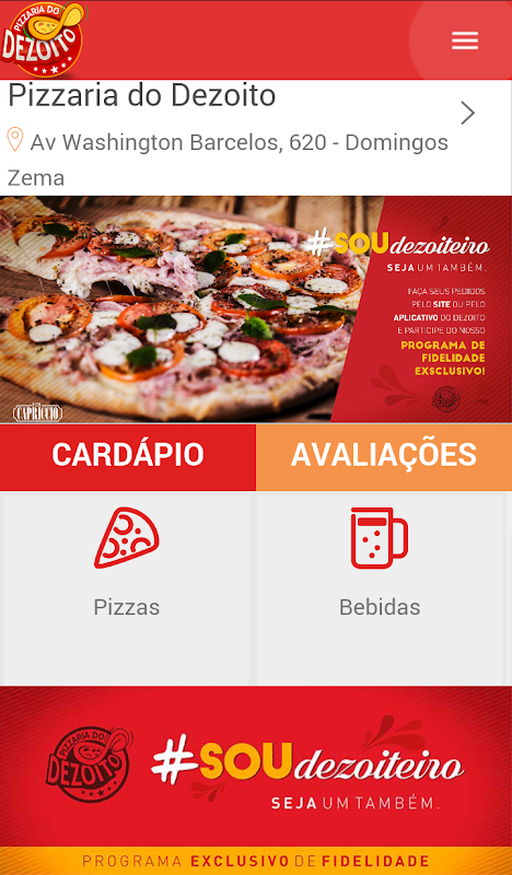 Aplicativo utilizado para efetuar pedidos no estabelecimento Pizzaria do Dezoito direto do smartphone ou tablet em Araxá.