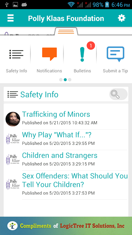 The Polly Klaas Foundation App is optimized for Smartphones and Tablets.