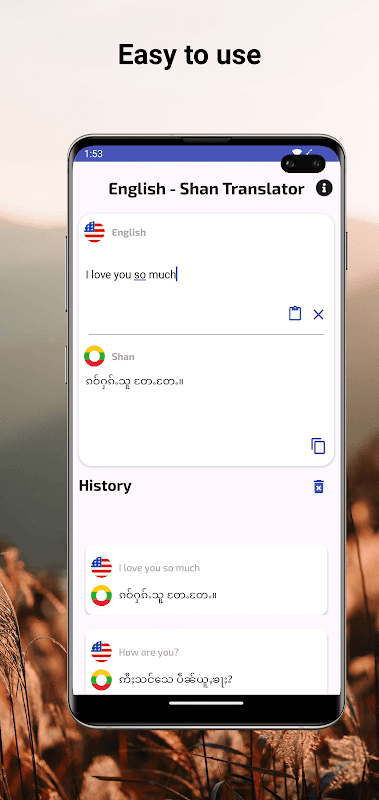 English to Shan language app for all users that want to learn Shan language. We have creating a good thing for you. Our app is easy to use and simple design.