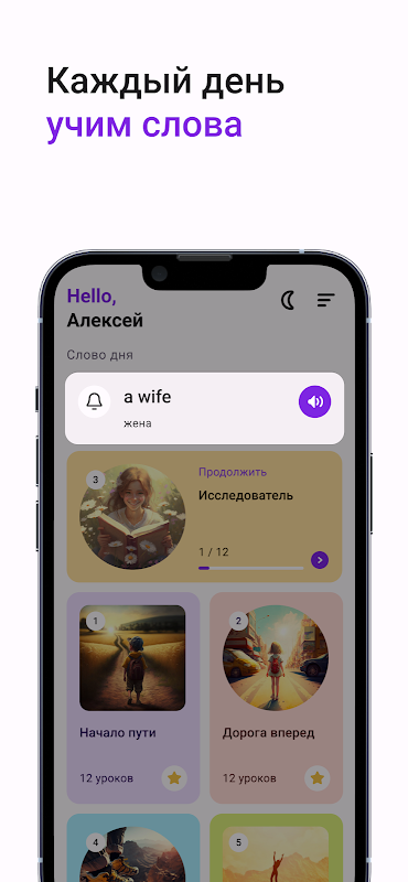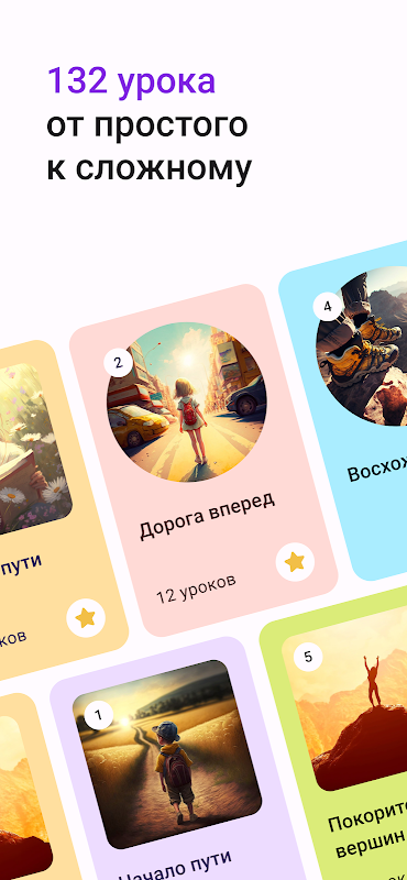 W aplikacji jest ponad 130 lekcji, materiał ułożony jest według zasady od łatwych do trudnych. Na przykład na pierwszej lekcji omawiamy 20 słów i temat gramatyczny „Present Simple”. W praktyce pisemnej tłumaczymy tylko takie zdania, które zawierają te 20 wyrazów i temat, który przeszliśmy na gramatyce. W drugiej lekcji używamy słów i gramatyki z dwóch lekcji, w trzeciej lekcji używamy materiału z trzech lekcji i tak dalej. Z każdą lekcją uczeń ma coraz więcej słownictwa i zestawu konstrukcji (metod budowania zdań). Zadania są zaprojektowane w taki sposób, aby uczeń czuł się komfortowo i rozumiał, że wymagane jest wykonanie dokładnie tego, co zostało już przerobione na lekcji w praktyce.