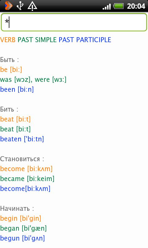 * Список неправильных глаголов