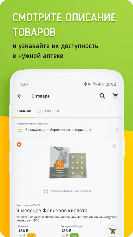 • делать предзаказ со скидкой и забирать его в удобной для себя аптеке;