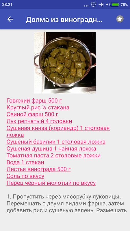 Толма — рубленая баранина (говядина) приправленная рисом, зеленью и завёрнутая в виноградный лист;