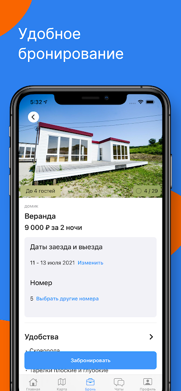 Na początek należy zainstalować aplikację, aby dowiedzieć się więcej o bazie i zarezerwować pokój lub dom na jej terenie. Każdy rodzaj zamieszkania jest szczegółowo opisany. Opis obejmuje usługi, które są wliczone w cenę pokoi i ich wyposażenia, a także lokalizację w bazie.