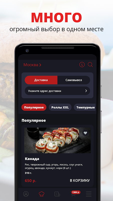 Od wielu lat zajmujemy się produkcją dużych i pysznych sushi oraz bułek. Znamy się na swojej branży i bardzo ją kochamy. Możesz usiąść w naszych kawiarniach, a także zamówić dostawę w całej Moskwie. Dołącz do fanów big rollsów!