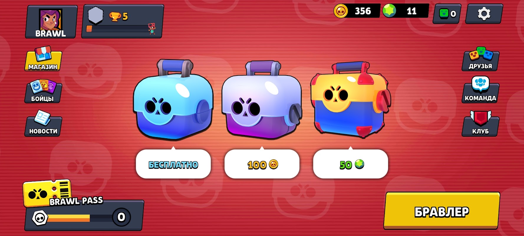 В симуляторе присутствует 3 бокса, при открытии которых вы получаете возможность выпадения новых героев, монет, кристаллов и тд. В игре также присутствует Brawl Pass, Путь к славе.