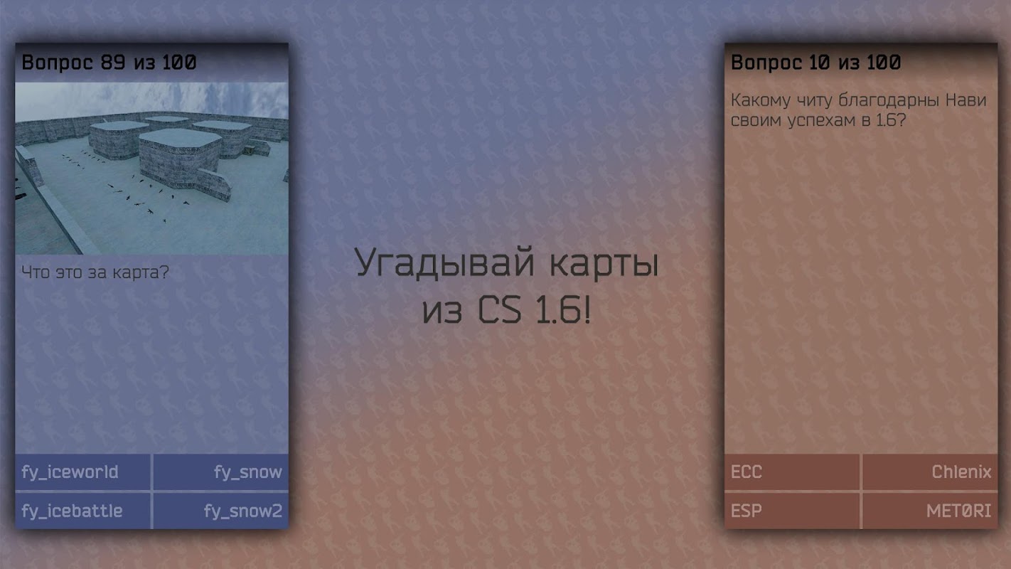 В игре тебя ждут самые разнообразные вопросы: по картам, позициям, оружию, профессиональным игрокам, командам и прочие вопросы, связанные с Контрой.