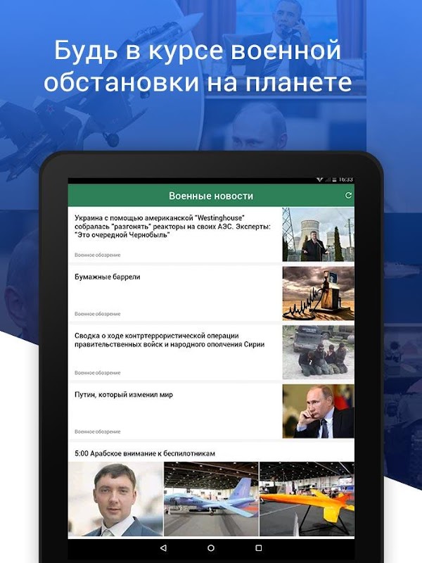 Военные новости – это ведущее российской медиа, которое использует информацию из различных источников, например: социальных сетей, новостных агентств (AP, РИА Новости, Reuters, AFP, UPI, ТАSS, DPA) и Военный форум(topwar, war.newsru, warday, armsofwar, voen, Военные материалы, dokwar, Интерфакс, InoPressa, Оружие России, 24smi, desantura, airfoece, Центр, Свободная Пресса ). Пользователи приложения могут читать последние мировые новости онлайн и любые другие материалы бесплатно.