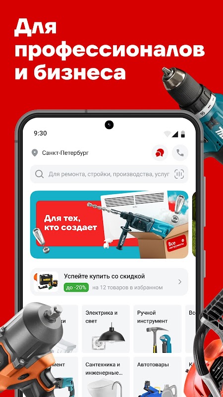 Nasza aplikacja zawiera 2 miliony produktów wiodących marek: Makita, Bosch, DeWalt, AEG, RYOBI, Resanta, Technonicol i innych. Oferujemy narzędzia i sprzęt dla przemysłu, budownictwa i usług. Znajdziesz u nas wszystko, od nasadek po młoty pneumatyczne.