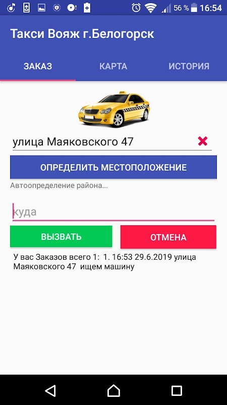 Данное приложение несет основной функционал для вызова такси и отображения состояния заказа, который клиент пожелал сделать в службе такси.