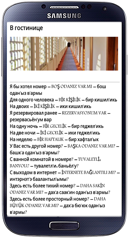 Этот разговорник содержит в себе большую базу фраз c четким произношением, для изучение турецкого языка.