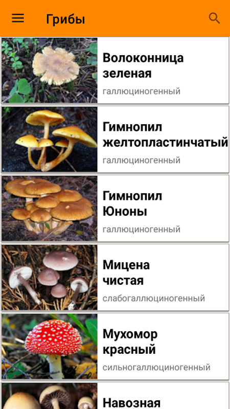 Informator zawierający opis głównych rodzajów grzybów halucynogennych.