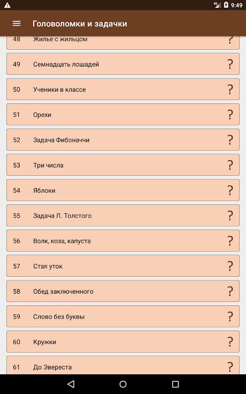 Сборник содержит головоломки на сообразительность и логику, вопросы с подвохом, задачи на вычисления, последовательности действий. Задачки развивают логику, гибкость мышления, развивают воображение и память. Они будут полезны как для детей школьного возраста так и для взрослых. Головоломки попадаются как простые и "глупые", так сложные и крайне замороченные. Многие из них используются в качестве задач на собеседовании!