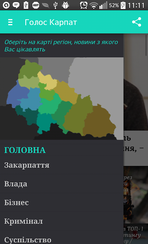 ✔ має зручну карту районів Закарпаття, щоб читати тільки місцеві новини;
