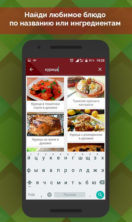 А может и этого не нужно будет делать! В приложении есть поиск по продуктам! Загляните в холодильник, выберите в приложении имеющийся продукты и программа найдет подходящие пошаговые фото рецепты с совпадением ингредиентов. Вам нужно будет только выбрать понравившееся блюдо.
