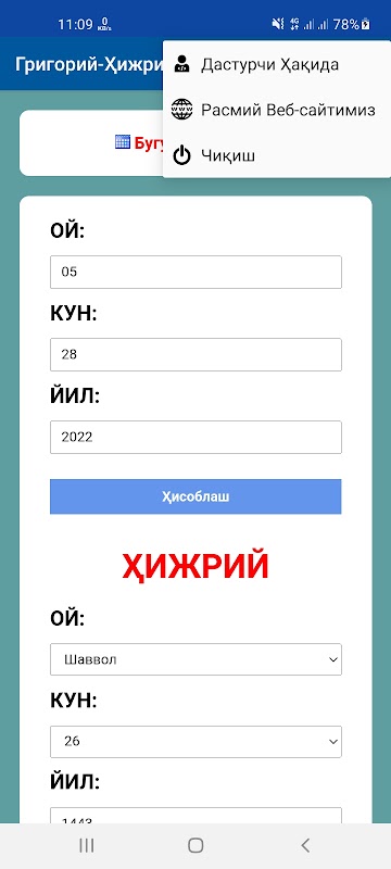Grigoriy-Hijriy Konverter Dasturi.