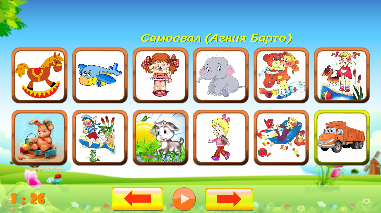 Wiersze Agniya Barto: - Niedźwiedź, Babka, Piłka, Pomocnik, Rubber Zina, Dorastałem, Girl-Roar wielu i wielu innych. Plus rymowanki i piosenki z radzieckich kreskówek!