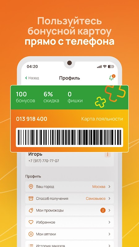 - Korzystaj z karty bonusowej bezpośrednio z telefonu;