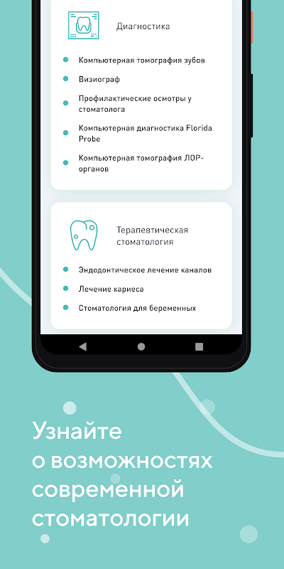 Благодаря нашему приложению вы всегда будете в курсе текущих акций, новостей, сможете познакомиться с коллективом наших клиник и получите доступ к списку оказываемых нами услуг и их стоимости.