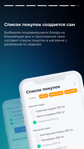 Nie tylko otrzymujesz menu odchudzania na każdy dzień - Biochemica generuje listę zakupów spożywczych na następne 3 dni, aby użytkownik mógł skorzystać z przepisów dietetycznych. Te proste przepisy pomogą osobie uzyskać potrzebne witaminy i minerały. Ponadto dzienniczek żywieniowy pomoże zmniejszyć obciążenie układu pokarmowego jako całości.