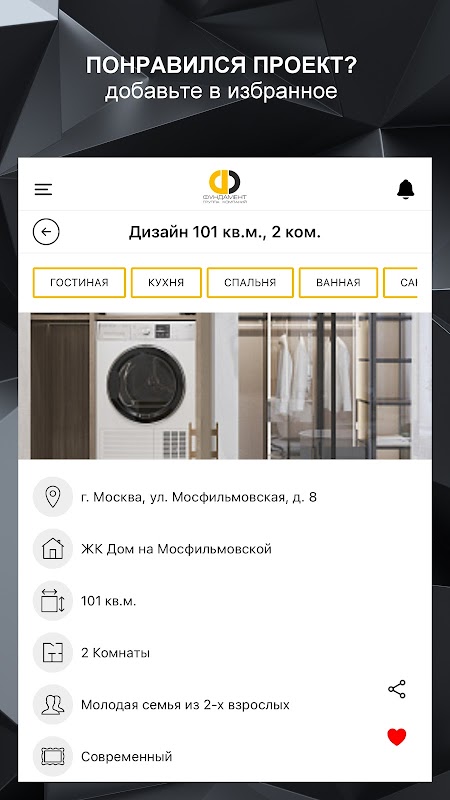 Fundament Group of Companies jest wiodącą organizacją w Moskwie i regionie zajmującą się kompleksowym tworzeniem wnętrz mieszkalnych pod klucz, od opracowywania projektów wnętrz po renowację i wyposażanie lokali, działającą od 1999 roku.