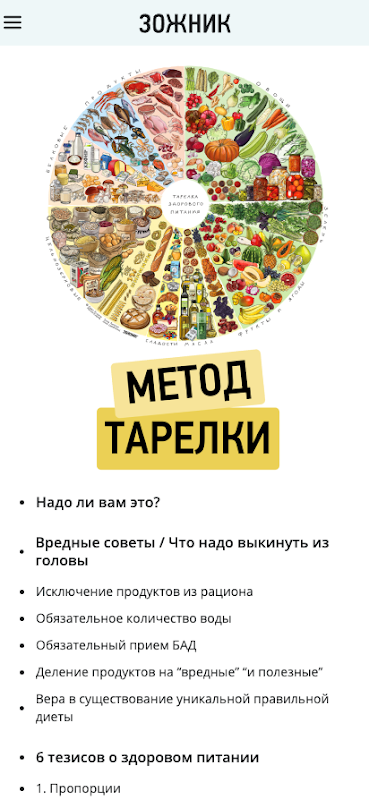 Aplikacja posiada wbudowaną książkę „Metoda talerzowa”, którą możesz czytać w osobnych rozdziałach i ciągle do nich wracać – to proste i zrozumiałe zasady zdrowego odżywiania.