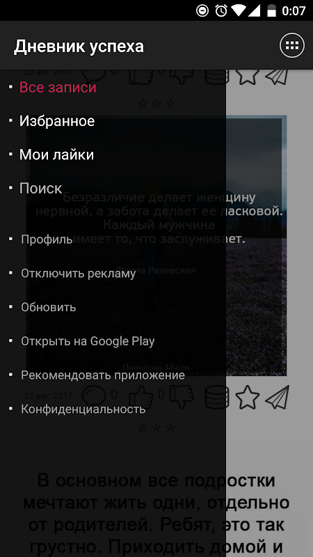 Понравившиеся записи можно комментировать и оценивать. Все понравившиеся картинки можно сохранять в галерее устройства в папке приложения. Ты можешь делиться записями с друзьями через социальные сети, а так же другие установленные на устройстве приложения. Ну и конечно, ты можешь оставлять лайки и сохранять записи в избранное.