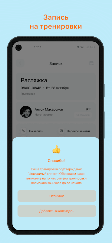 Otrzymuj powiadomienia PUSH o zbliżającym się treningu z 3-godzinnym wyprzedzeniem;