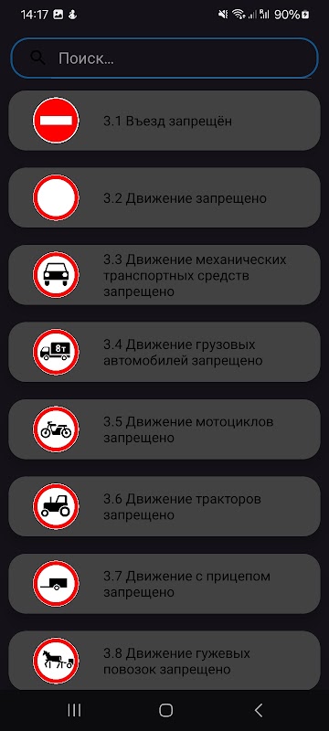 Aplikacja zawiera listę, nazwy, obrazy, opisy wszystkich znaków drogowych
