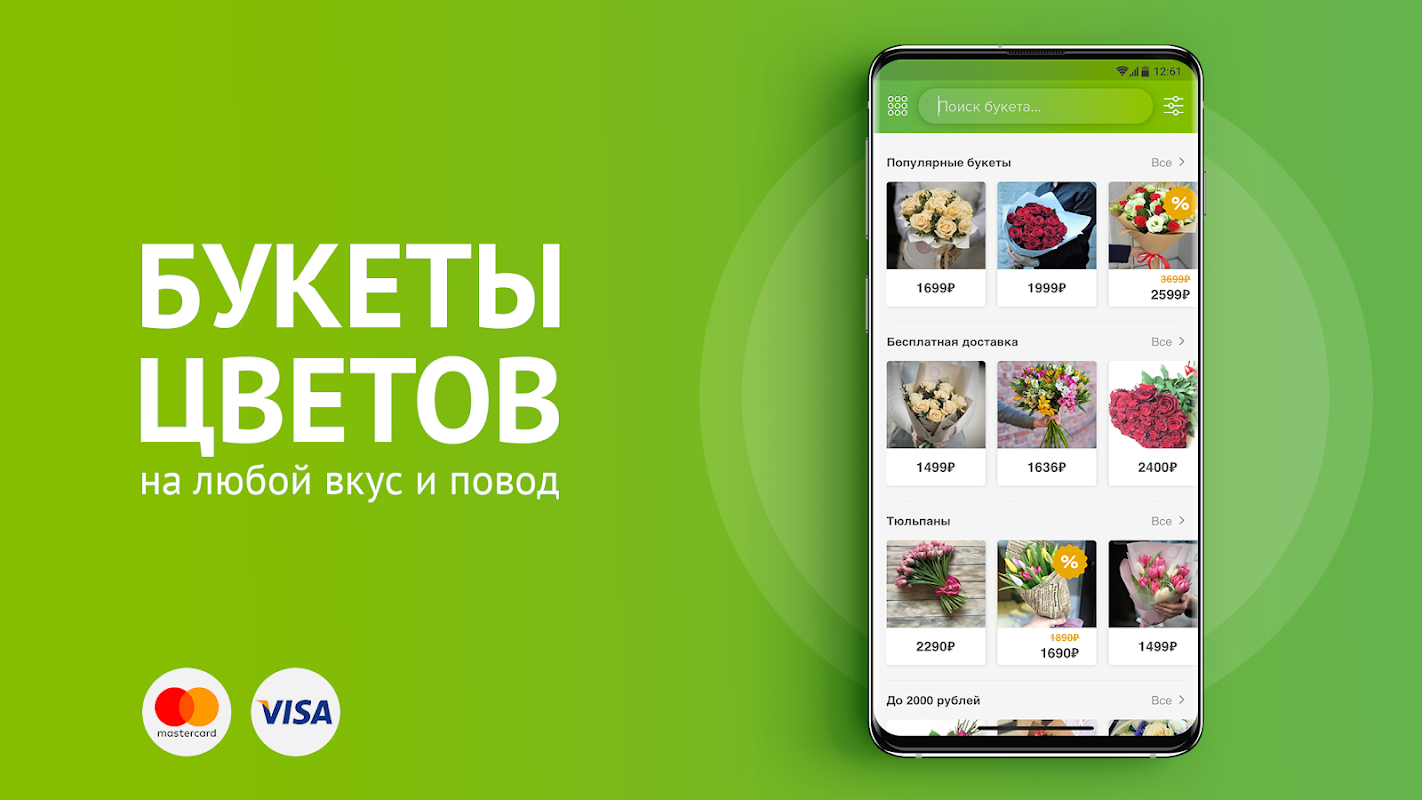 В приложении так много вариантов — более 2000 предложений по Москве, — что вы точно найдёте букет за нужную сумму. А ещё мы каждый день выкладываем супер предложения со скидками до 70%.