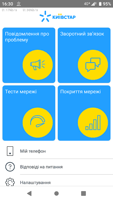 Za pomocą aplikacji możesz powiadomić operatora o niezadowalającym stanie usług komunikacyjnych (na przykład trudności z połączeniami lub Internetem), korzystając z sekcji „Zgłoś problem” aplikacji.