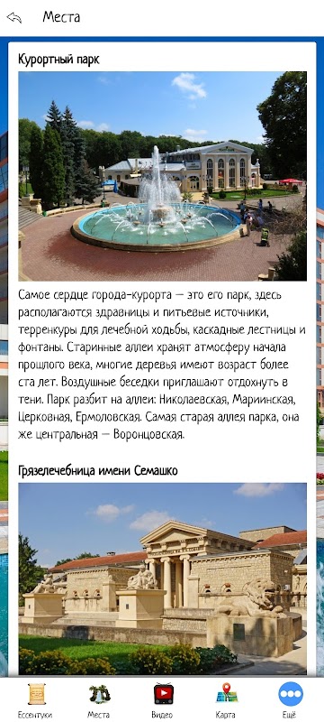 Aplikacja o mieście Essentuki. Znajomość przed podróżą.