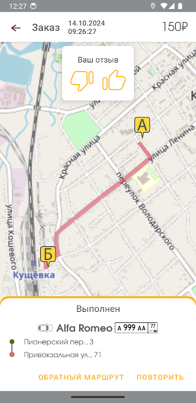 Program do zamawiania taksówki. Kushchevskaya (terytorium Krasnodar). Crystal taxi service.