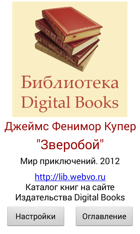 Wydawnictwo Digital Books zajmuje się popularyzacją dzieł literatury klasycznej i wspieraniem początkujących autorów. Publikujemy książki w formie aplikacji na urządzenia mobilne oparte na systemie operacyjnym Android. Za pomocą prostego menu każdy czytelnik może dostosować sposób wyświetlania książki do charakterystyki swojego urządzenia.
