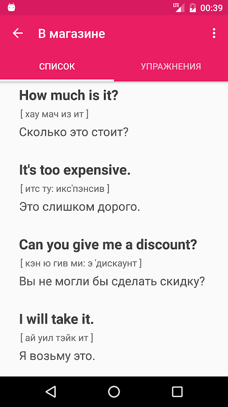 Приложение можно также использовать в путешествиях и поездках в качестве англо-русского разговорника.