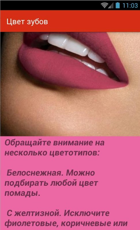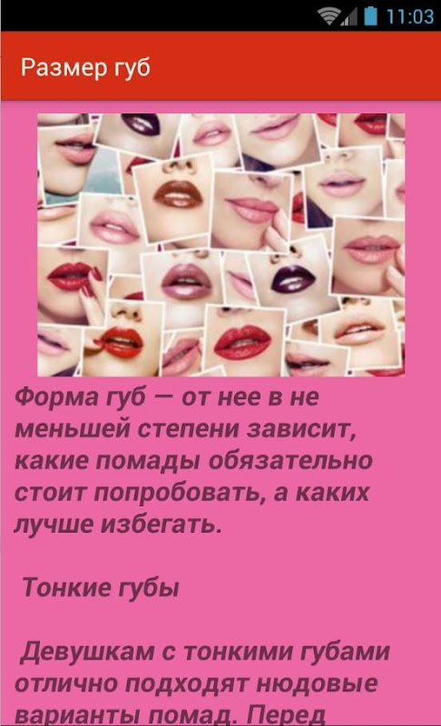 В приложении вы познакомитесь с советами как подобрать цвет помады для ваших губ.