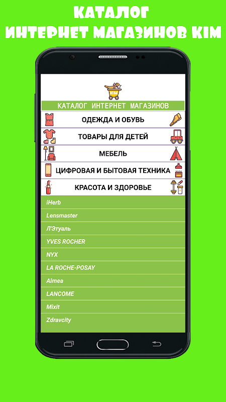 Используйте интернет-магазины, на которых легко совершить самые выгодные покупки по вполне демократичной цене. В приложении каталог интернет магазинов масса популярных интернет-магазинов, которые ждут своих пользователей. Становитесь их постоянными посетителями.