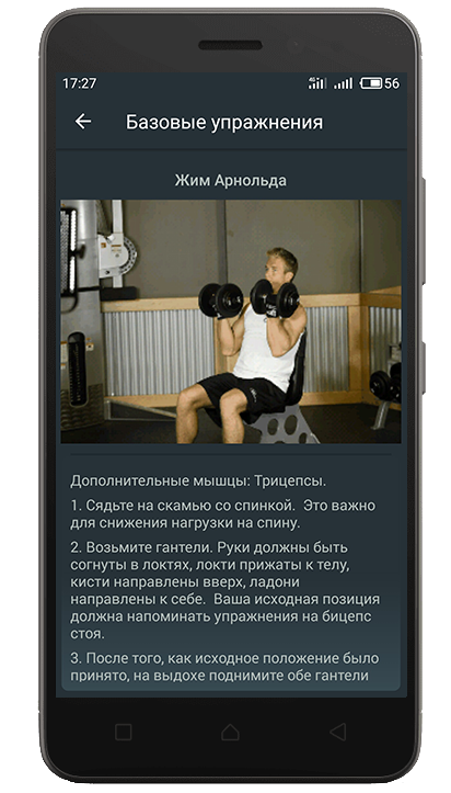 Для каждого упражнения составлено краткое и понятное описание техники выполнения и картинка с анимацией. Это позволит быстро и правильно выучить технику выполнения упражнения, которая очень важна для того что бы тренировка была эффективной и не приводила к травмам.