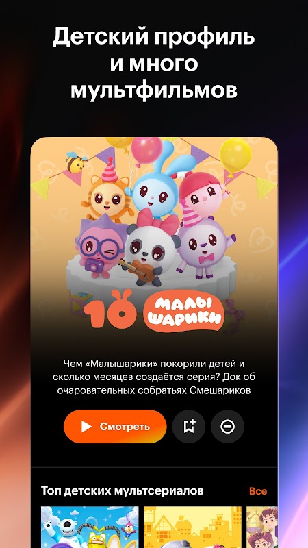 Кинопоиск is a comprehensive online cinema platform that offers a vast collection of movies, TV series, and cartoons for streaming both online and offline. The service features a user-friendly player with convenient functions like double tap rewind, credit skipping, and quality adjustments. Through Yandex Plus subscription, users can access exclusive content, including Kinopoisk originals, along with additional benefits such as Yandex Music, e-books, and cashback points. The platform provides a robust navigation system with detailed filters, editorial selections, and comprehensive information about films and personalities. Users can find movie ratings, reviews, trailers, and interesting facts about their favorite content. For families, Кинопоиск offers a safe children's section with age restrictions and popular cartoons. The service also includes a cinema ticketing system, allowing users to receive premiere reminders and purchase tickets directly through the app.