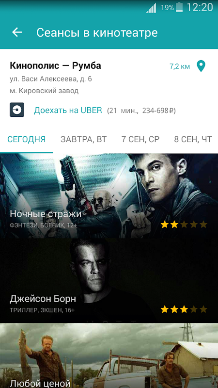 - Выбор ближайшего кинотеатра с учетом вашего местоположения