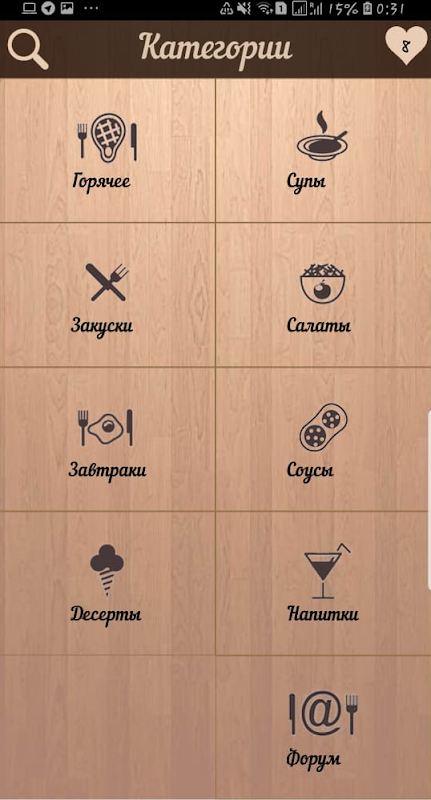 • Избранное – вы можете добавить рецепт в список избранного, нажав иконку “сердечка”.