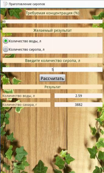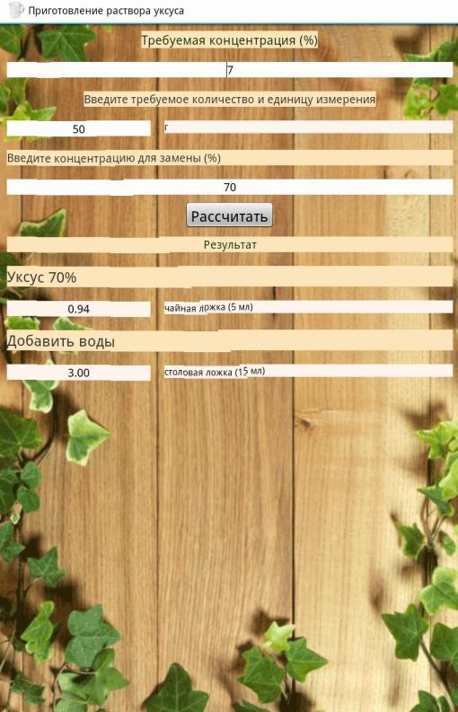 "Кухонный калькулятор" поможет пересчитать вес и объем продуктов, вычислить количество сахара и воды, чтобы сделать сахарный сироп, рассчитать количество соли для рассола, найти количество уксуса и воды при приготовлении растворов уксуса разной концентрации.
